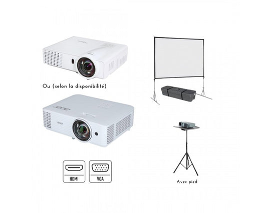Location pack vidéo – 3000 lumens avec écran 2 x 2 m