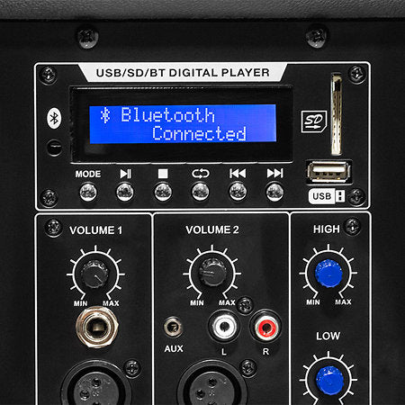 La PS15A-BT se distingue par sa connectivité Bluetooth intégrée, permettant une diffusion audio sans fil fluide depuis tout appareil compatible. Le mode TWS (True Wireless Stereo) offre la possibilité de jumeler deux enceintes pour une expérience sonore plus immersive. L’enceinte dispose également d’un lecteur USB/SD intégré, facilitant la lecture directe des fichiers audio.