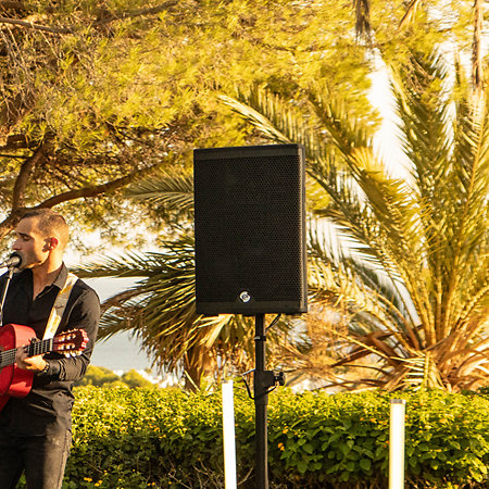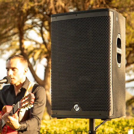 L'enceinte dispose de deux entrées combo XLR/Jack et d'une sortie XLR, permettant une connectivité classique avec des mixeurs, des instruments, etc. Les commandes indépendantes de gain d'entrée/sortie et le réglage DSP à un bouton facilitent l'ajustement du signal pour des configurations simples et efficaces.