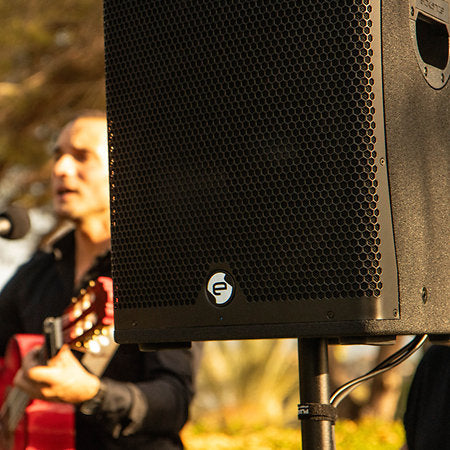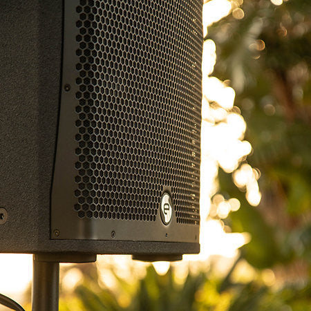 Le caisson en contreplaqué de bouleau est protégé par une grille en acier de calibre 18 avec un revêtement poudré. La ePro12A peut être montée sur un pied d'enceinte, placée sur un tube de subwoofer ou utilisée sur le côté en retour de scène.