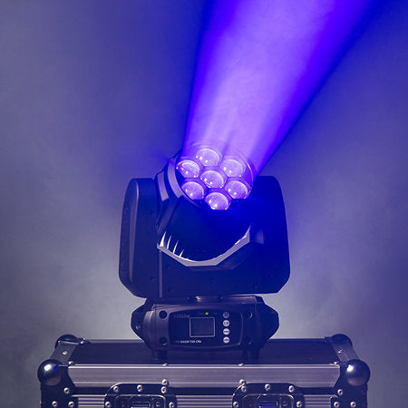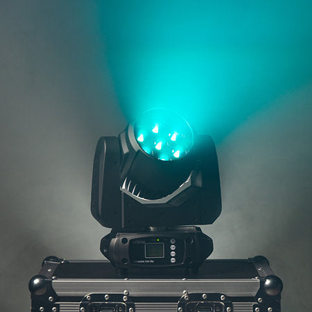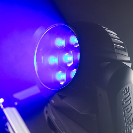 La lyre Wash Evolite Evo Wash 725-CRz intègre 7 LED RGBW de 25 W, un zoom motorisé de 6° à 60°, deux modes DMX et des programmes internes, idéale pour illuminer scènes, stands ou plateaux vidéo.