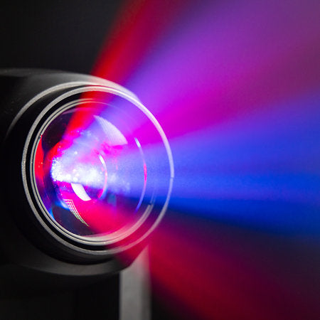 - Roue de 7 gobos en verre rotatifs interchangeables (diamètre 16,9 mm)