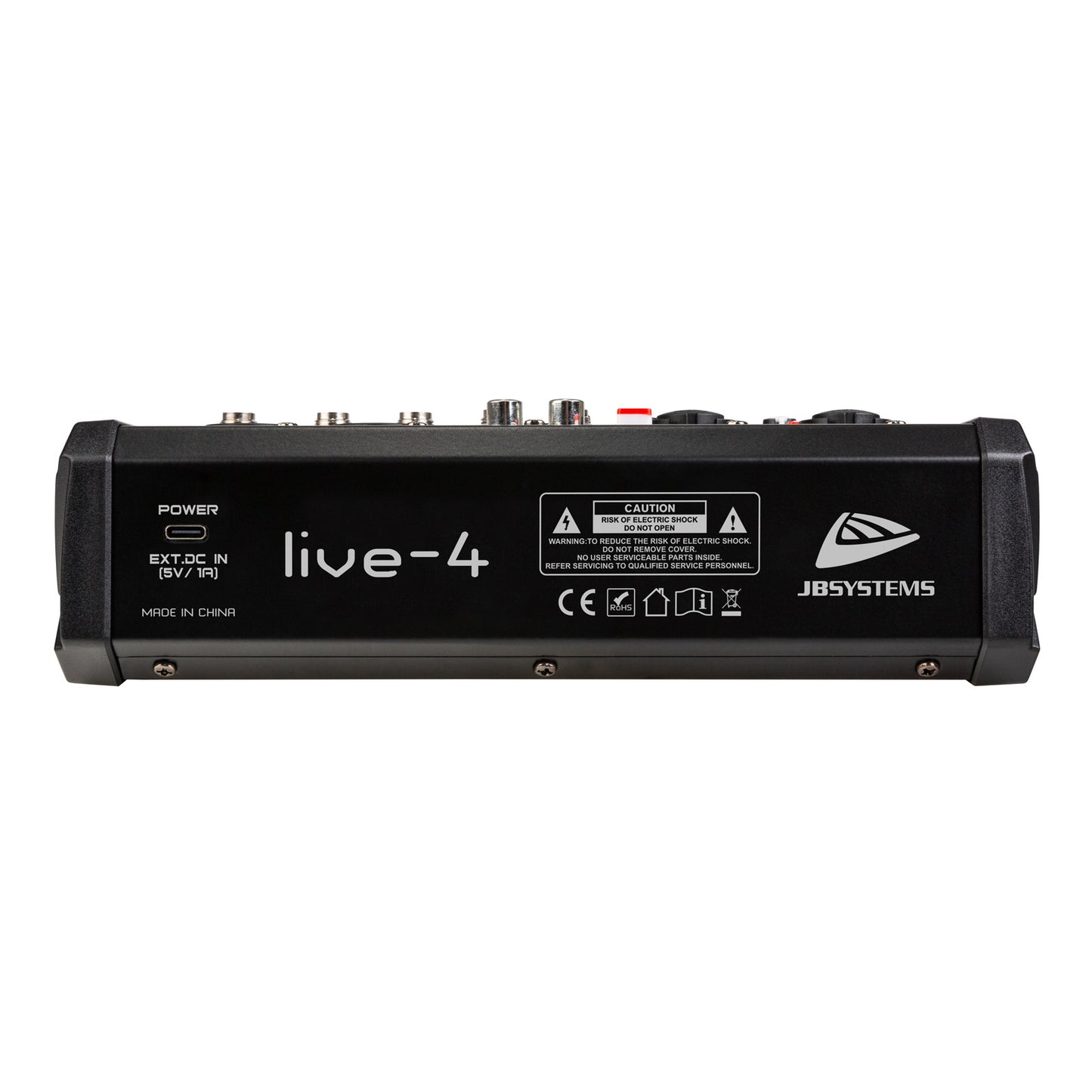 La LIVE-4 - JB Systems est une table de mixage PA polyvalente au format compact, offrant 4 entrées et 3 canaux.