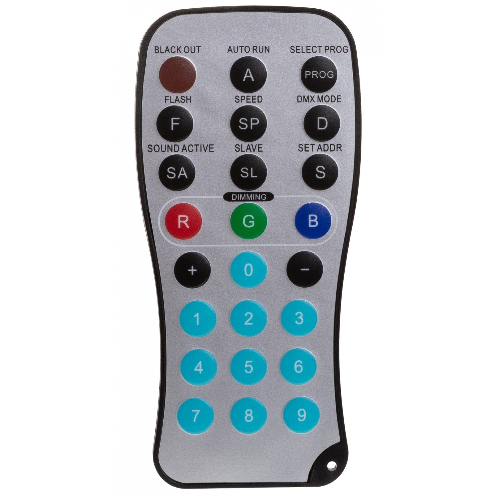 Contrôle DMX : 3 modes de canaux différents (3, 7 et 24 canaux) avec sélection de programme et contrôle individuel des couleurs RGB.