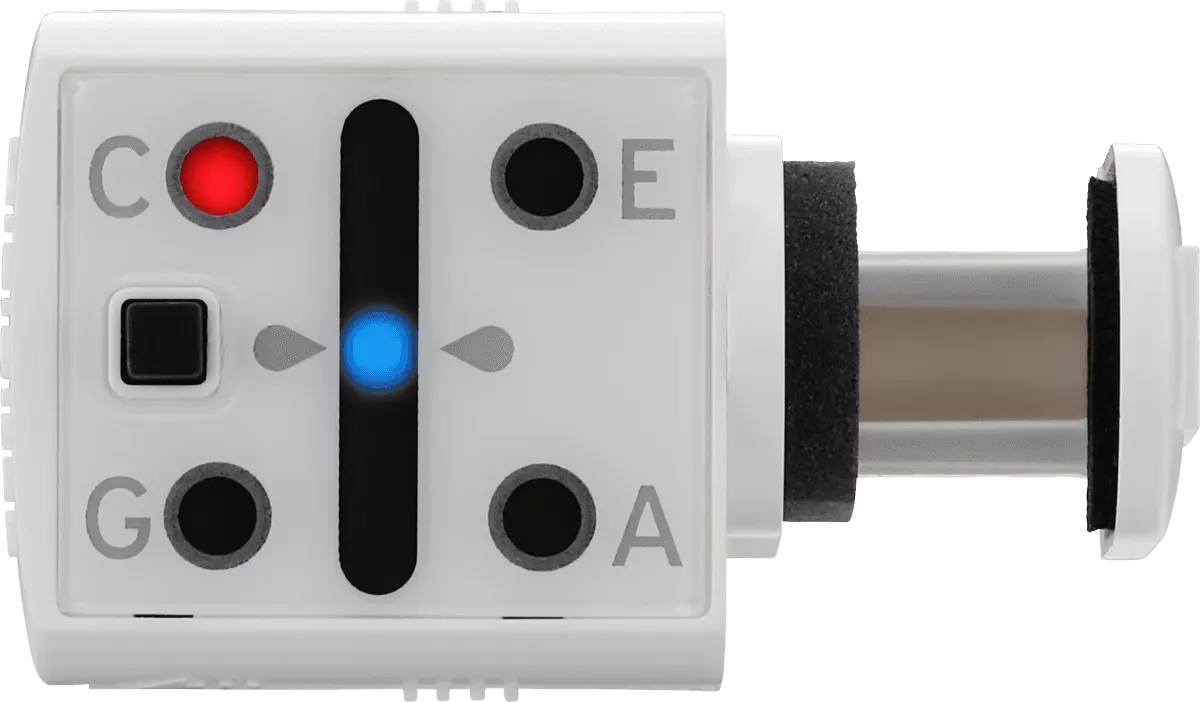 Tournez simplement les mécaniques guidées par les LED. Lorsque vous tirez sur la corde à accorder, une lumière s’allume pour indiquer la mécanique correspondante. Il vous suffit alors de faire tourner la clé tout en observant l’indicateur lumineux : la LED montre en temps réel si la note est juste ou non. Une fois l’accord parfait atteint, les LED supérieure et inférieure clignotent brièvement pour le confirmer. L’écran est orientable afin de s’adapter à vos préférences de visualisation.