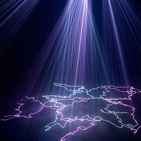 Le EL-900RGB est un projecteur laser multicolore d’une puissance totale de 900 mW. Il intègre des moteurs pas à pas rapides (3 à 8 kpps) et dispose de quatre sorties indépendantes, chacune dotée de sa propre paire de moteurs, offrant ainsi une projection dynamique et variée.