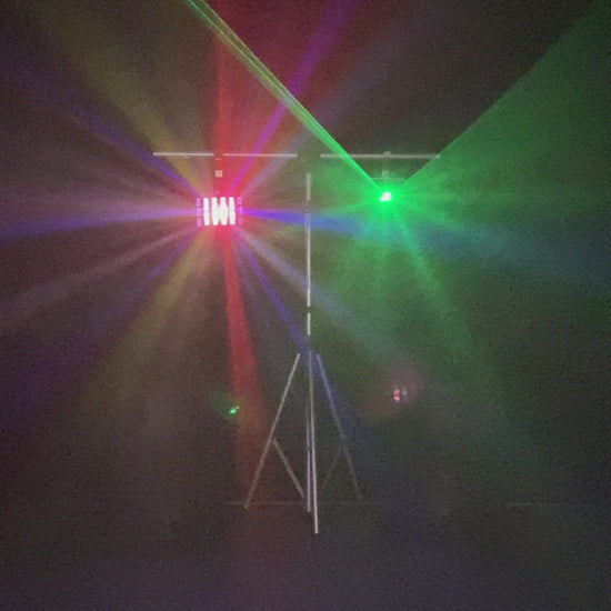 Derby LED, laser vert et fumée : trois ambiances complémentaires pour une soirée complète.