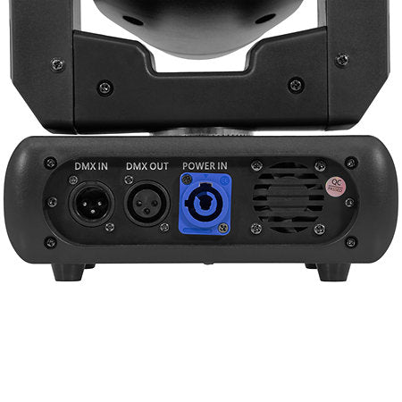 Son focus motorisé permet une mise au point rapide et précise, ajustant la netteté du faisceau selon les besoins de la scène. Le stroboscope atteint jusqu'à 25 flashs par seconde, et le Dimmer linéaire offre un contrôle de l'intensité lumineuse de 0 à 100 %. Alimenté en 100-240 VAC / 50-60 Hz, il consomme 150 W, s'intégrant facilement dans la plupart des environnements.