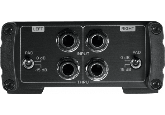 Un pad de -15 dB est intégré afin d’éviter toute saturation lors de la connexion à des sources à fort niveau de sortie, garantissant ainsi un rapport signal/bruit optimal et une qualité audio professionnelle.