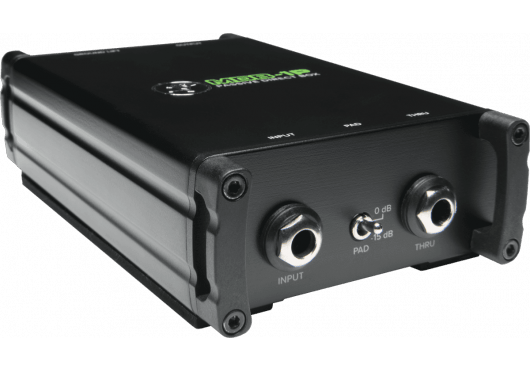 Cette boîte de direct, idéale pour une utilisation avec une guitare ou une basse aussi bien sur scène qu’en studio, présente des dimensions de 147 x 86 x 38 mm pour un poids de 0,40 kg. Elle dispose d’une entrée jack 6,35 mm avec sortie thru, ainsi que de sorties jack et XLR symétrique, cette dernière offrant la possibilité de désactiver la masse.