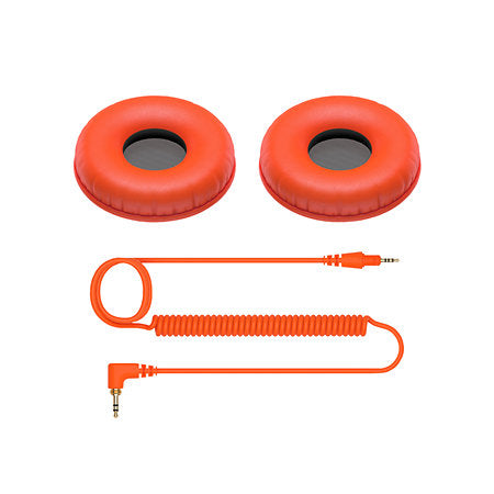 Ce pack de customisation pour le casque HDJ-CUE1 de Pioneer DJ comprend un câble et deux coussinets assortis. Il vous permet de personnaliser votre casque selon vos envies. Il s'agit ici de la version HC-CP08-M, proposée en coloris Orange.