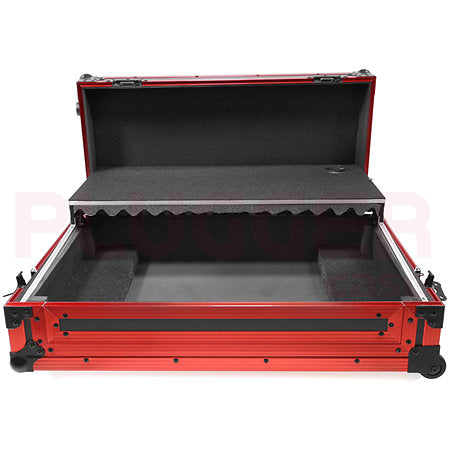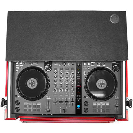 Le Flight case Plugger Elite en multiplis de 9 mm est spécialement conçu pour offrir une protection maximale à votre contrôleur Pioneer FLX6-GT ainsi qu’à d’autres contrôleurs de dimensions similaires. Fabriqué en bois multiplis de haute qualité, il garantit une solidité et une sécurité optimales pour votre matériel lors de vos déplacements. Ce modèle inclut un plateau rabattable pour ordinateur portable et une trappe amovible à l’avant pour un accès facile aux réglages de votre contrôleur. Les coins en métal type boule apportent une protection supplémentaire et facilitent l’empilage de plusieurs flight cases. Les renforts d’angles et les coins profilés en aluminium renforcent la structure du flight case pour une durabilité accrue. Ce modèle est également équipé d’un capot de protection, et sa finition élégante en noir nid d’abeille avec coins noirs et aluminium rouge lui confère un aspect professionnel. Ce flight case est la solution idéale pour les DJ professionnels et les utilisateurs en déplacement fréquent, alliant sécurité, fonctionnalité et design.