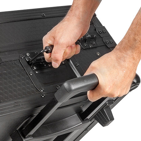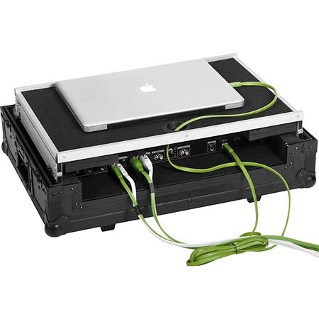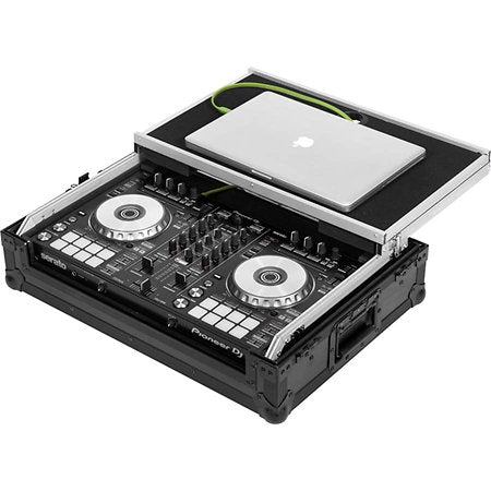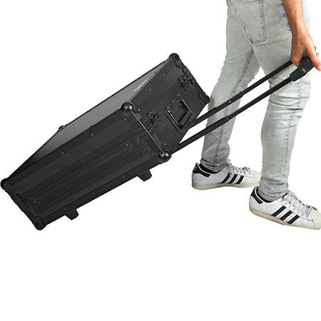 Ce flight case est spécialement conçu pour les contrôleurs DJ de format moyen, jusqu'à 554 mm de longueur. Il dispose d'un support pour ordinateur portable rétractable, de roues encastrées et d'une poignée de tirage télescopique et rétractable, facilitant ainsi le transport de votre équipement. Son design noir élégant lui confère un aspect moderne et professionnel.